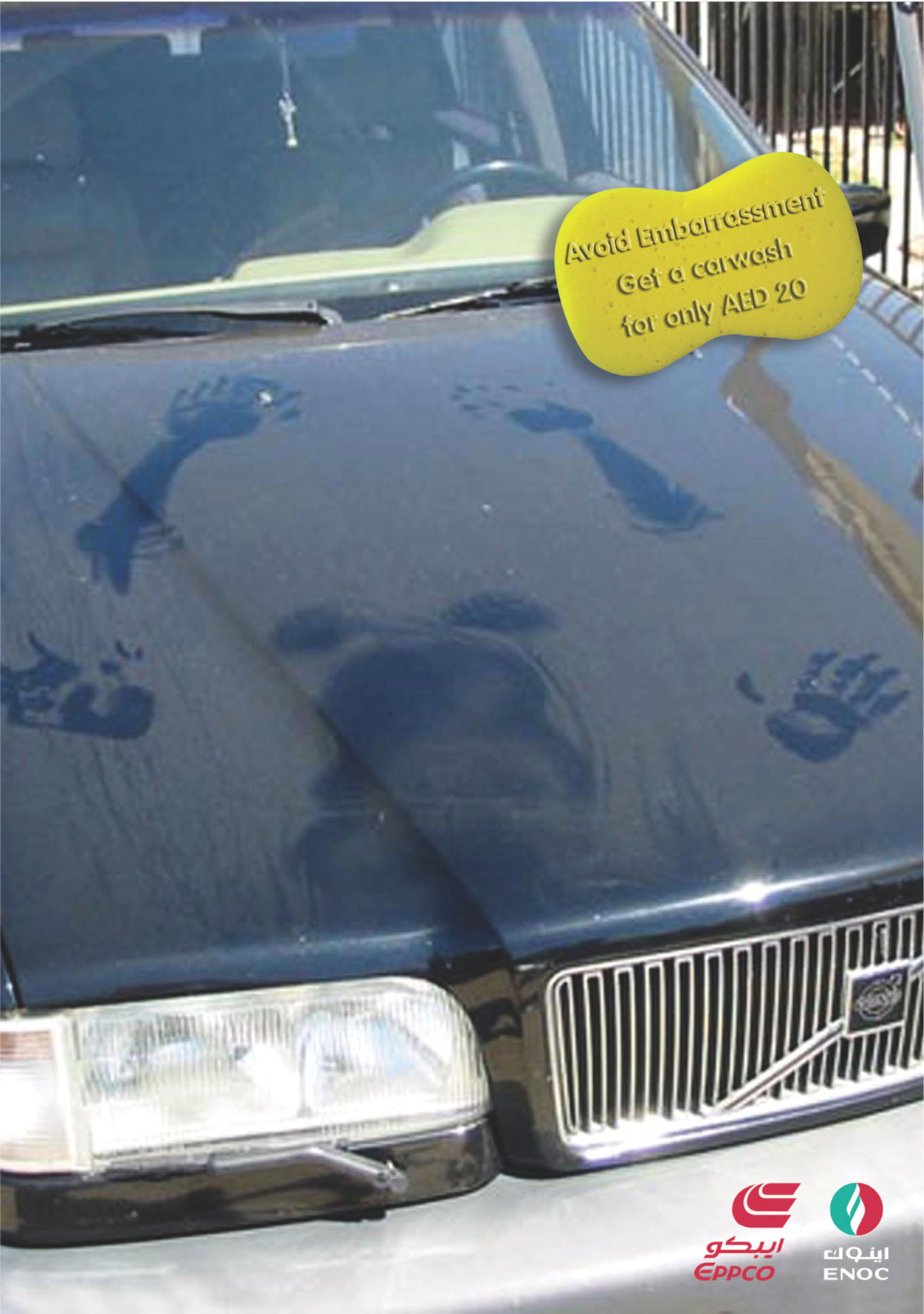 A campaign for Enoc & Eppco to encourage people to get their cars washed often. It wasn't approved. "Avoid embarrassment. Get a car wash for only AED 20. (It was not approved)